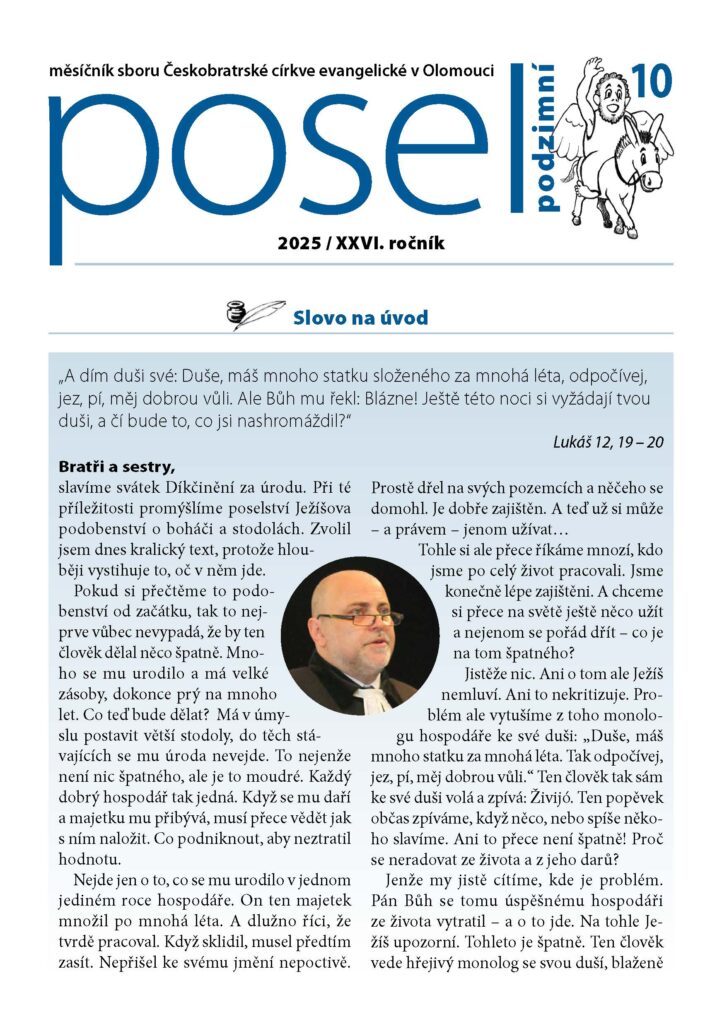 Co konkrétně děláme? Základem jsou bohoslužby každou neděli v 9 hodin. Po nich se scházíme k setkáním u kávy. Paralelně s nimi probíhá výuka dětí v nedělní škole ve dvou věkových skupinkách. Na prahu dospělosti konáme tzv. konfirmaci, což je první osobní vyznání víry v životě a přiznání se ke křtu, který proběhl v nejranějším věku. Pravidelně se schází skupinka dětí, dorostu a mládeže. Svoje schůzky má i střední generace, seniorklub, konáme letní tábory a sborové rekreace. V našem kostele je možné uzavřít manželství po předchozí předmanželské přípravě. A samozřejmě doprovázíme pozůstalé v souvislosti s úmrtím jejich blízkých.